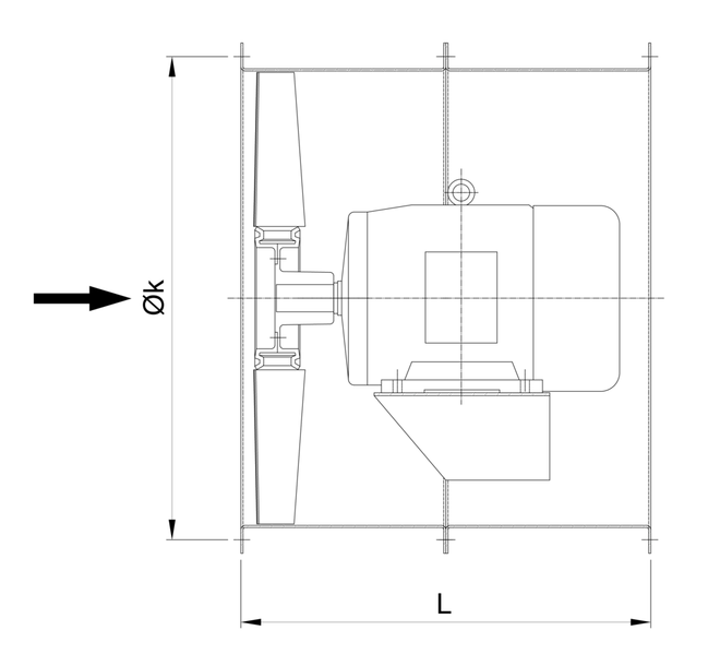 Luftrichtung über Motor drückend, mit direktem Antrieb