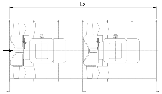 Zwei Ventilatoren in Reihe geschaltet zur Erreichung höherer Drücke oder Erfüllung gesetzlicher Vorschriften wie Garagenverordnung.